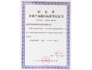 企業(yè)產(chǎn)品執(zhí)行標(biāo)準(zhǔn)登記證書(shū)